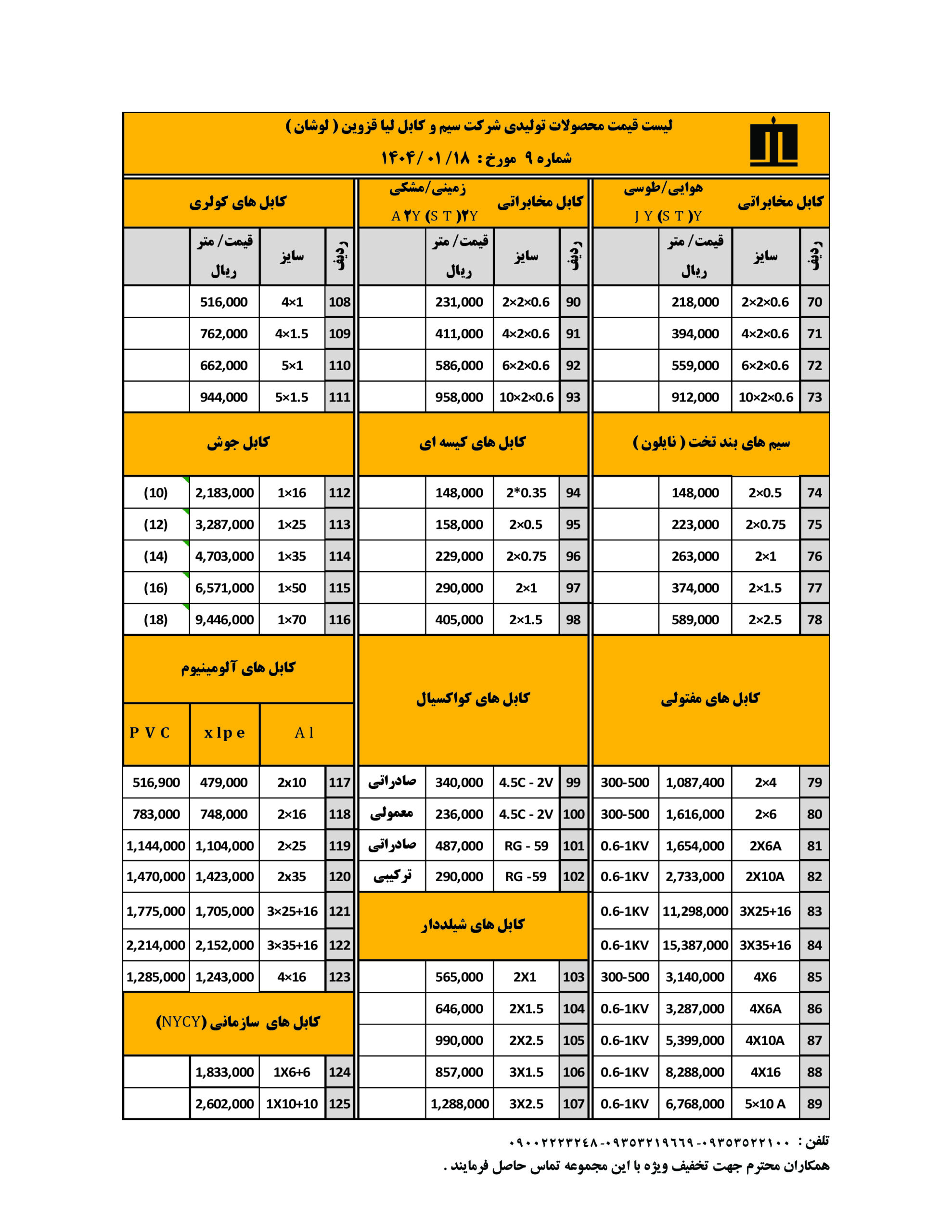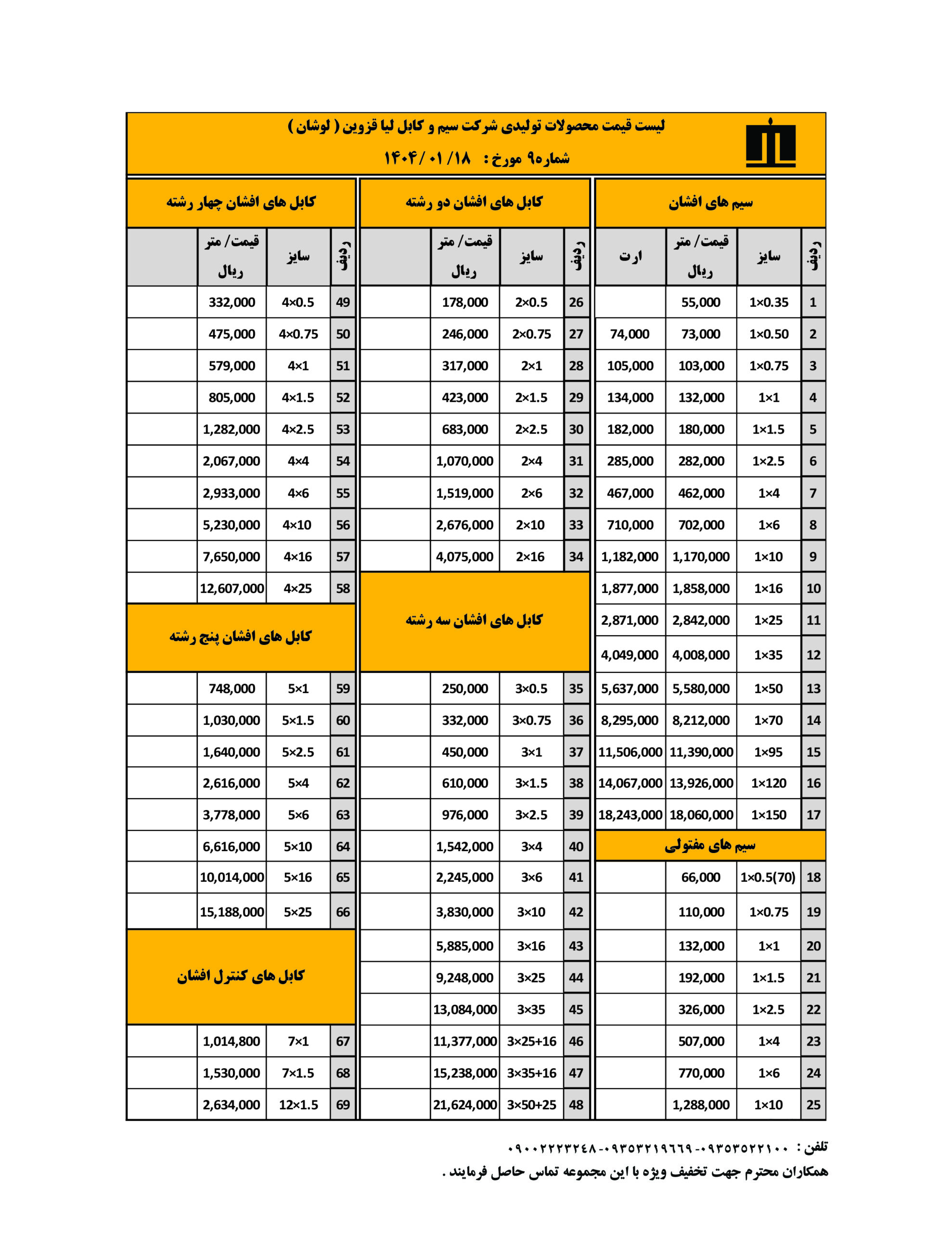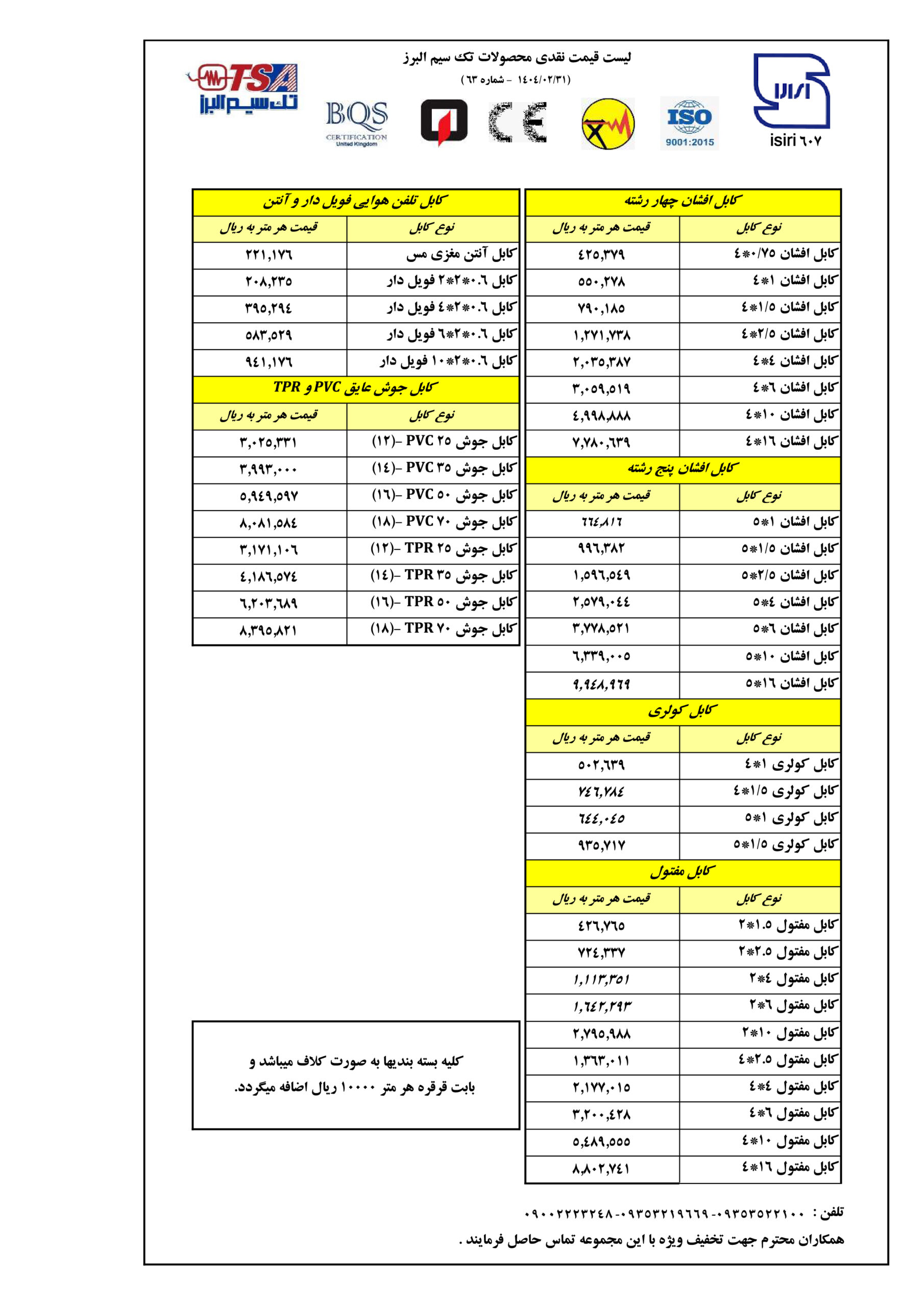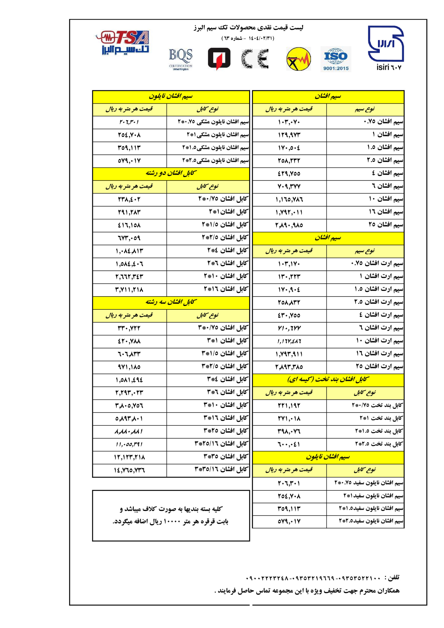 سیم و کابل لامپ و روشنایی کلید و پریز تک سیم البرز لوشان برادران افشار نژاد زیتون پارس شعاع توس افراتاب